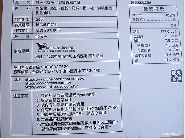 原來只是包裝大,鳳梨酥本人還挺嬌小的,隨袋附上乾燥劑確保品質