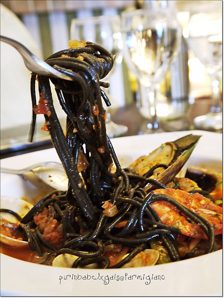 (↑拿波里蕃茄海鮮墨魚麵,230元)