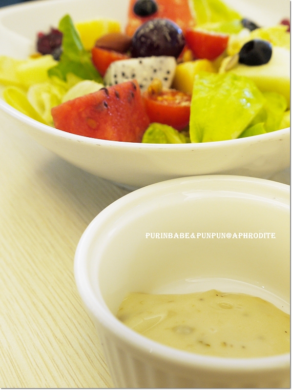 可惜啊可惜,沙拉醬過於濃膩,沾了反倒蓋過蔬果的自然鮮甜