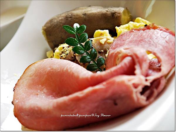 洋芋烤得夠透,搭配鋪底的半熟蛋一塊入口,好吃