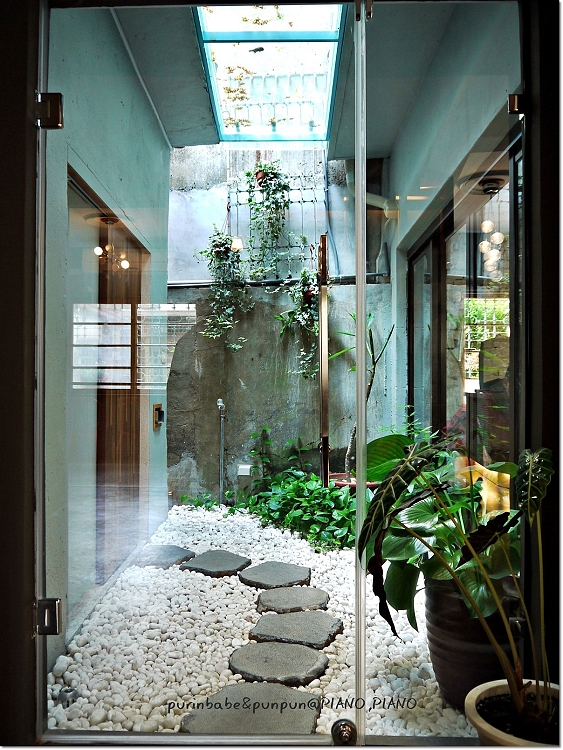 推開玻璃門,天井略做造景,順著石版,通往洗手間
