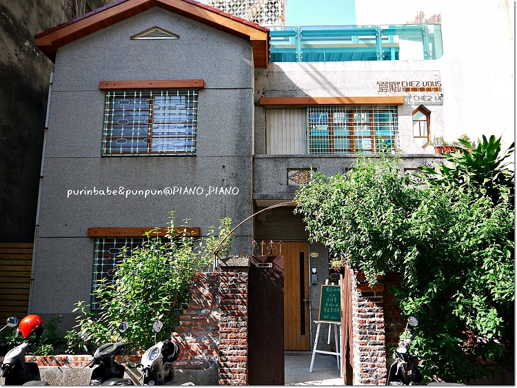 很喜歡CHEZ VOUS字樣烙在洗石子外牆上的光影,甚至比招牌本身更迷人