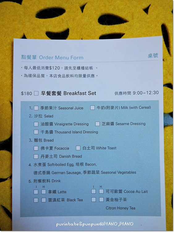 180元包括果汁、主餐、飲料的早午餐供應至中午12點半