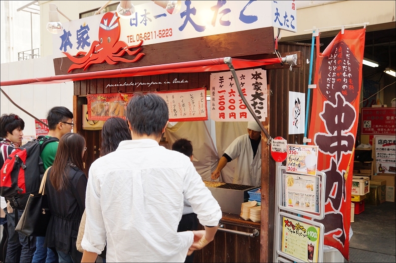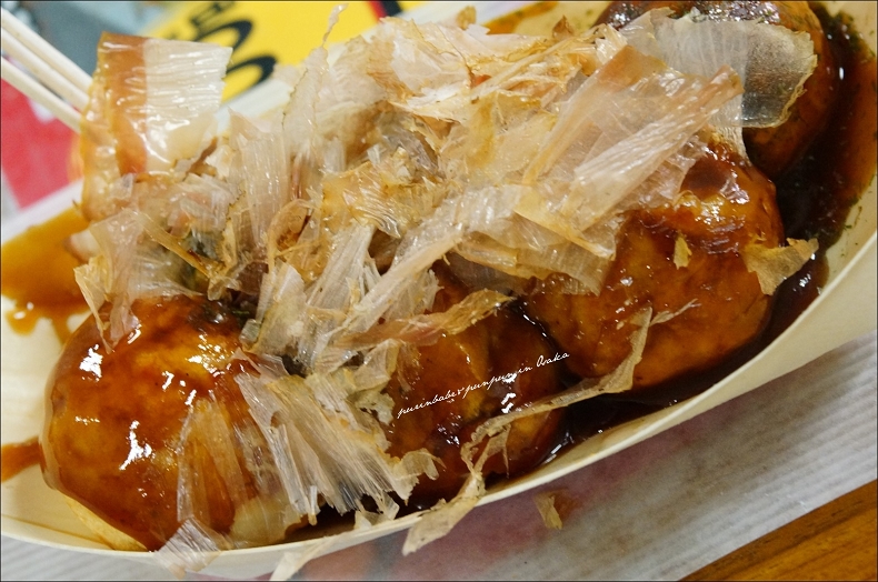 抵達大阪當晚排隊等著進一蘭時,注意到一旁章魚燒人潮不少