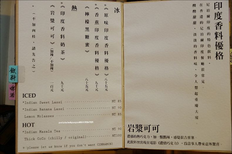 雖然來自香港,烹書不賣絲襪鴛鴦黑白淡奶,而是在港時期偏愛的印度尼泊爾餐廳代表飲品