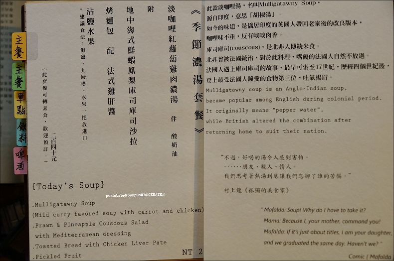 看過菜單無數,像這樣直接把菜式嵌在精裝本裡的還是頭一遭,只能說姊弟倆太有才