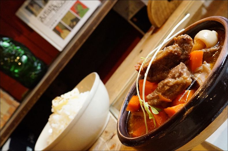輕嚐肉汁,盡是菜蔬甘甜,正想起羅宋湯的溫醇呢,便給餘韻的酒味一震 - -