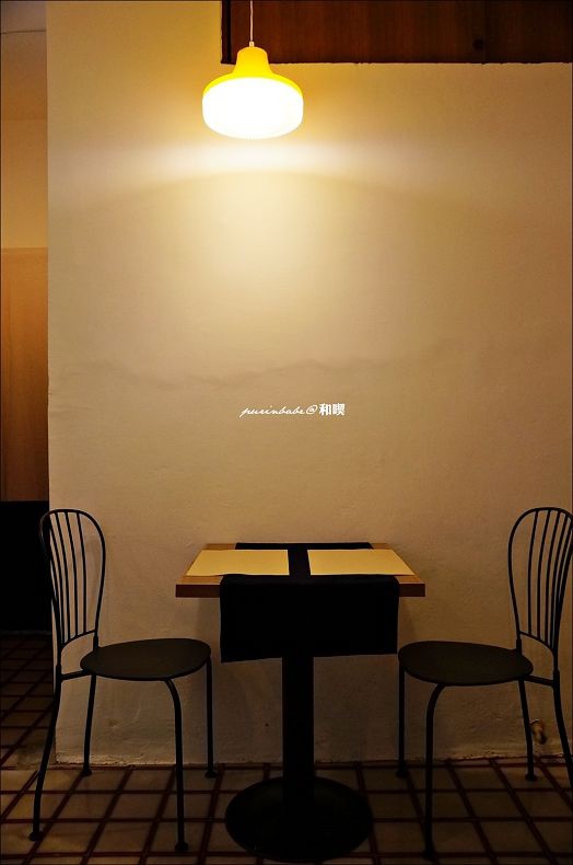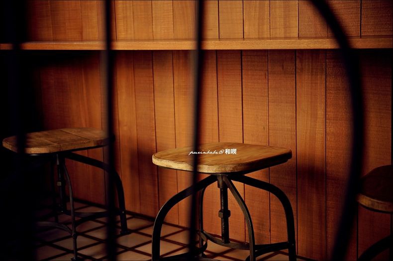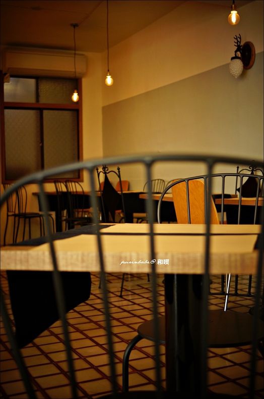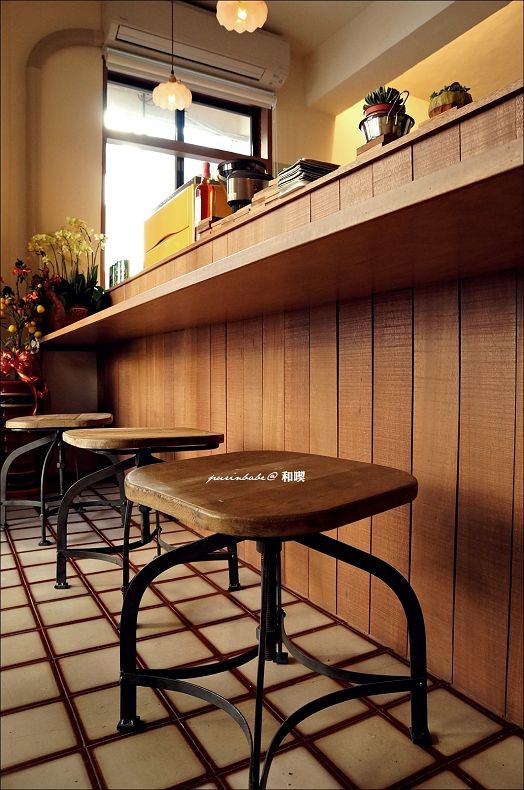 和喫保留了老公寓的塊狀磁磚,運用鐵件線條及低飽和度色調,簡約和風,韻味無窮