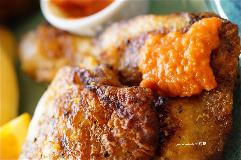 醃漬入味的雞肉緊實帶點黑胡椒的辛香,更妙的是綿密的沾醬有過癮的麻辣,更有蕃茄的甜香