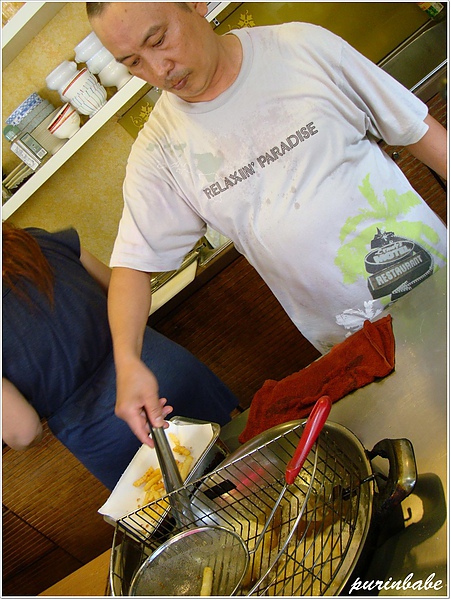 由於他一直躲鏡頭,我只好虛實相間的手法,虛拍油鍋、實拍他囉!